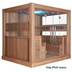 - Phòng xông hơi hồng ngoại kết hợp kính gỗ có phần khung bằng gỗ tự nhiên chắc chắn, bên ngoài được sơn phủ PU chống mối mọt mang lại sự sang trọng cho ngôi nhà.